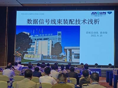 2022年9月24日至25日,中國汽車電子電器發(fā)展中心成立大會暨第一屆會員代表大會在嘉興隆重召開,聚集了行業(yè)內(nèi)幾百家企業(yè)積極參與。此次盛會以“交流、分享、協(xié)同、發(fā)展”為主題,作為常務(wù)理事單位,君權(quán)自動化營銷總監(jiān)袁佳俊先生受邀和行業(yè)內(nèi)各位同仁一起分享交流了《數(shù)字信號線束裝配技術(shù)淺析》,獲得了領(lǐng)導(dǎo)和同仁的肯定和支持。我們立志做好數(shù)字信號線束加工的自動化解決方案,更好的服務(wù)我們的客戶。為汽車電子發(fā)展一直努力、前進(jìn)!